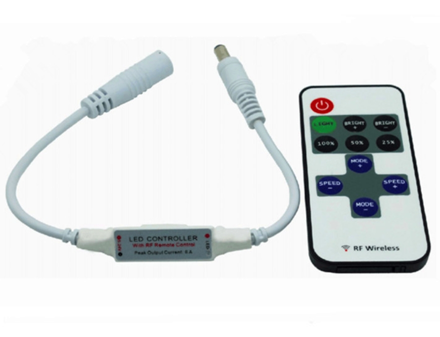 无线射频11键迷你单色调光控制器,可以远程控制,进行调光、调色,且具有跳变、渐变的功能,接线简单,操作方便。